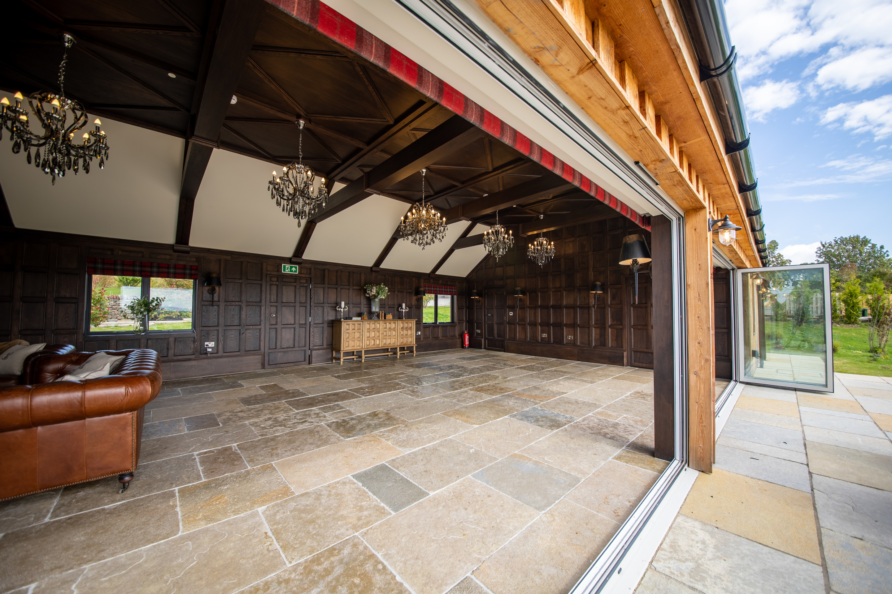 At the heart of the estate lies an impressive 2,000 sq. ft. studio with luxurious underfloor heating and expansive windows framing sweeping pastoral views. This versatile, light-filled space is perfectly suited to yoga retreats, workshops, creative sessions, or group gatherings, allowing nature to become part of the experience.
